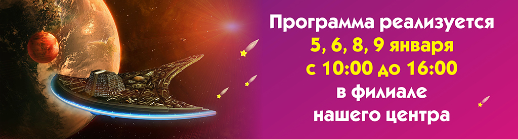 Если ваш ребёнок ждёт на новогодние каникулы чего-то по-настоящему особенного, мы приглашаем его в незабываемое путешествие в звездную галактику «РЕВОД» на новую планету с волшебной аурой, где могут реализоваться любые желания и фантазии! Мы будем сами создавать жизнь на этой планете будущего, воплощая свои мечты и цели!